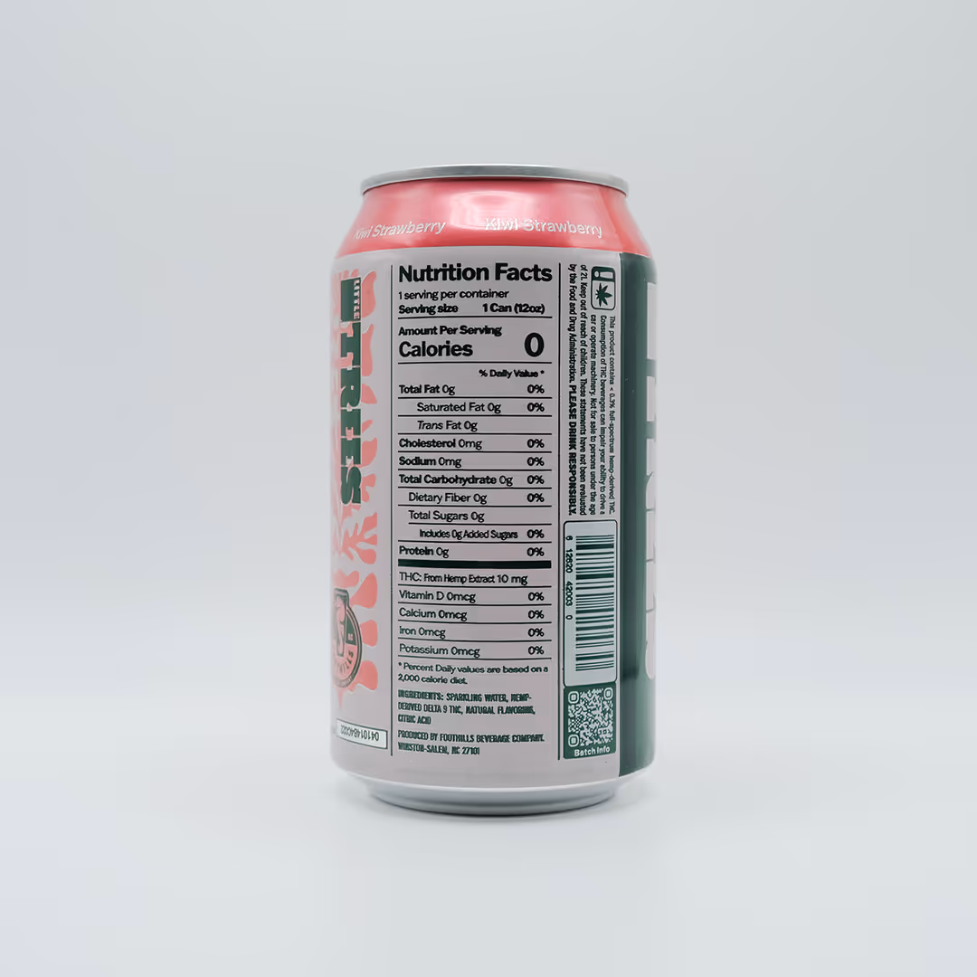 Little Trees Sparkling Water Kiwi Strawberry is a bright and juicy THC infused seltzer crafted by Foothills Brewing. Each 12 ounce can delivers 10mg of hemp derived Delta 9 THC, infused into clean, crisp sparkling water with zero calories, zero sugar, and absolutely no alcohol.